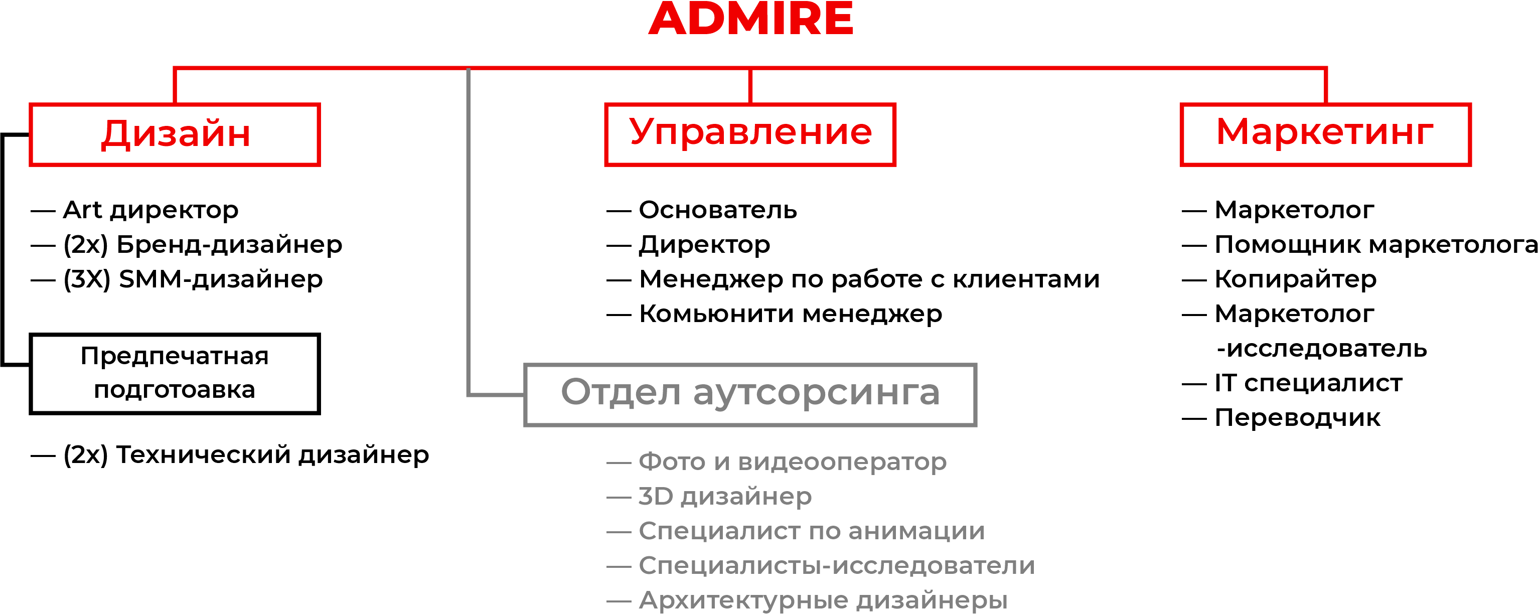 Компания ADMIRE работает с 2020 года и за это время успешно реализовала более 200 проектов. Мы предоставляем профессиональные услуги в сфере брендинга и маркетинга, помогая компаниям создавать сильные и узнаваемые бренды, а также эффективно развивать их на рынке. Основатель компании — Нормурод Хасанов, который ежегодно входит в состав жюри престижных международных конкурсов UK Young Lions, PHNX Awards и Shorty Awards. Это подтверждает высокий уровень профессионализма и международное признание команды ADMIRE.